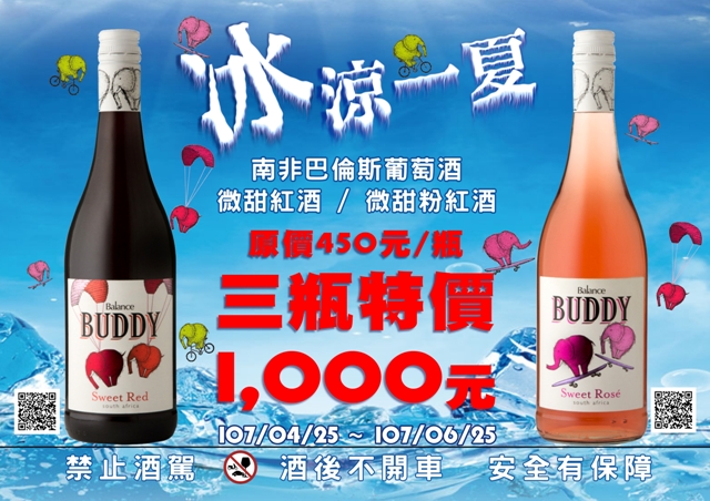 最新活動 : 炎炎夏日冰涼一夏南非巴倫斯微甜紅洒、粉紅酒優惠活動